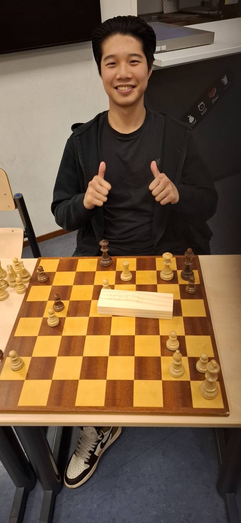 Hier hebben we dus ook veel om kunnen lachen en langzamerhand eindigde de ene na de andere partij. Uitslagen: Rene Burger en Bas vd Putte speelde remise en Xander wist als enige te winnen. Super!! Verder ook felicitaties aan Michel Goedegebuur die zijn eerste pot snel verloor maar zijn revanche pot ook een remise wist af te dwingen.